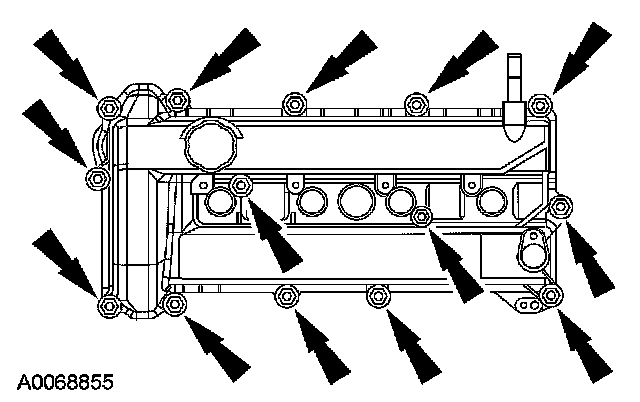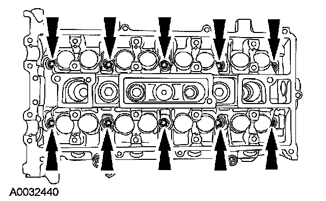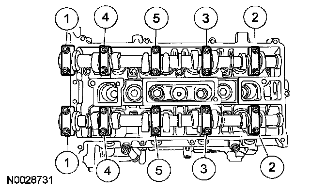 ^ Loosen the camshaft bearing bolts in the sequence shown, one turn at a time. Repeat until all the tension is released.