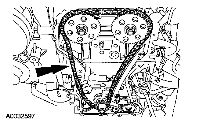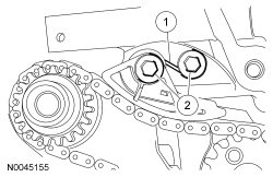 NOTE: The camshaft timing slots are offset. If the special tool cannot be installed, rotate the crankshaft one complete revolution clockwise to correctly position the camshafts.