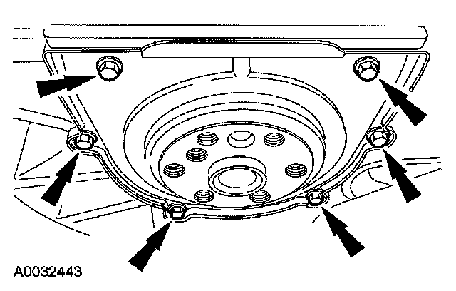 NOTICE: The crankshaft sprocket diamond washer may come off with the crankshaft pulley. The diamond washer must be replaced; remove and discard the diamond washer. If the diamond washer is not installed, engine damage may occur.