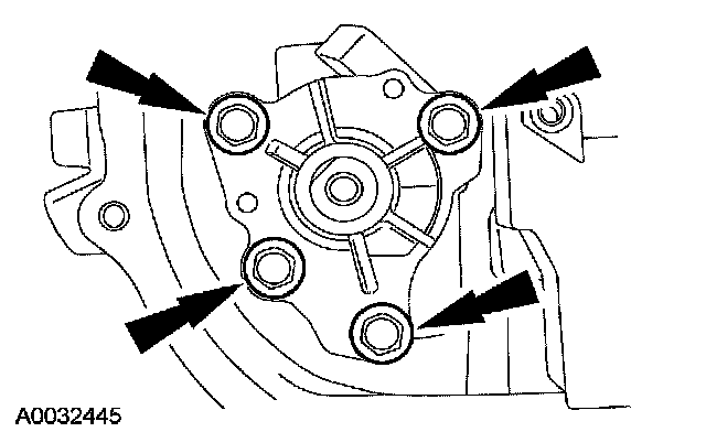^ Remove and discard the crankshaft pulley bolt and washer.
