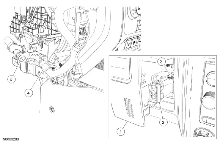 7. NOTE: The venturi must be aligned correctly with the heater core and evaporator core housing for installation. When installing the venturi, it must be pressed into the heater core and evaporator core housing until an audible click is heard to indicated that it is correctly attached.