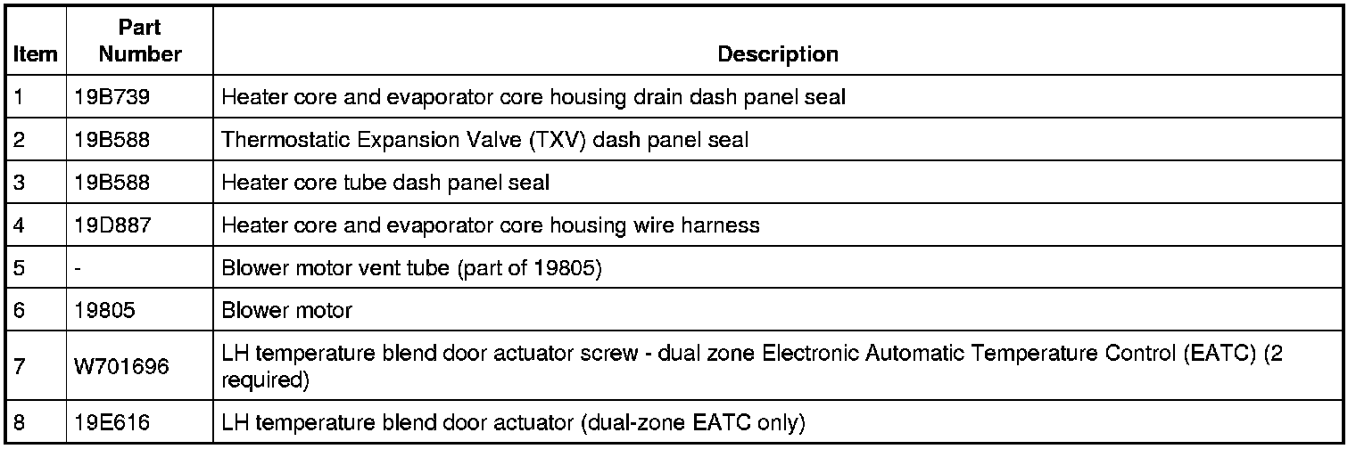 17. Remove the heater core and evaporator core housing drain dash panel seal.