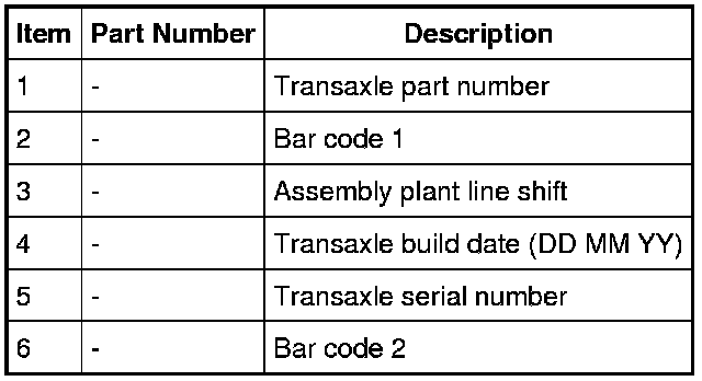 When servicing the transaxle, use the transaxle identification tag located on top of the transaxle case.