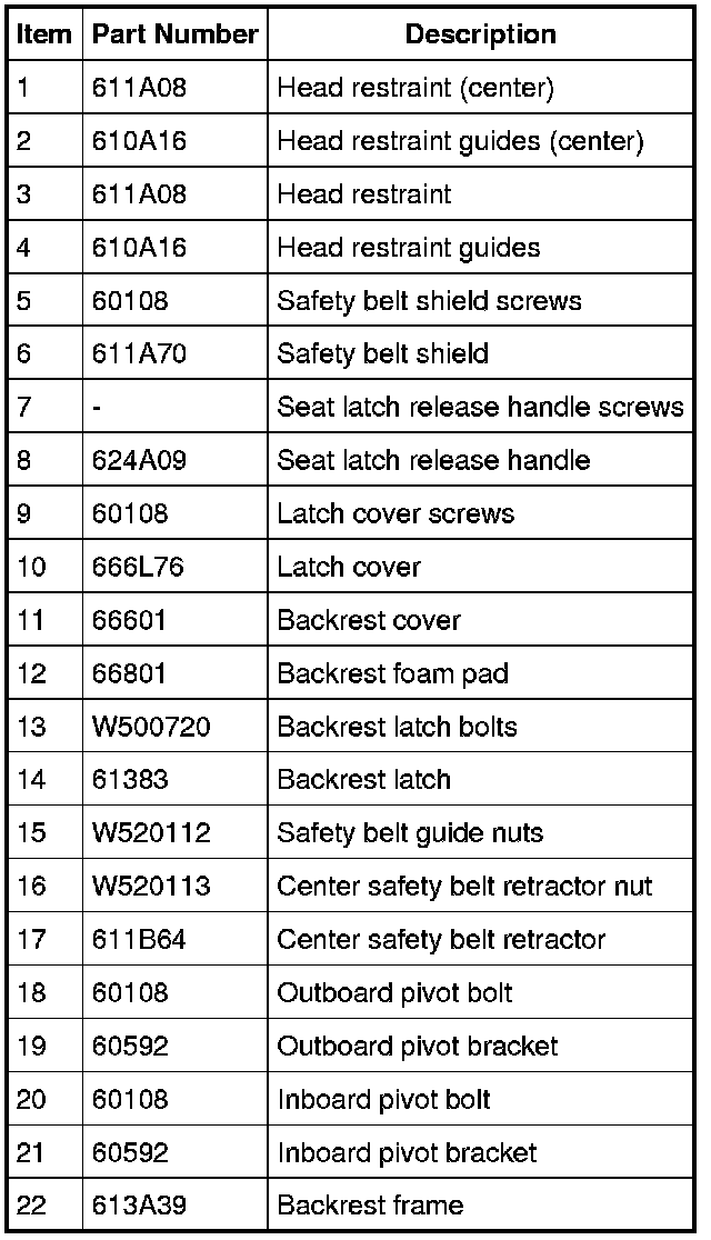 Seat - Exploded View, Rear