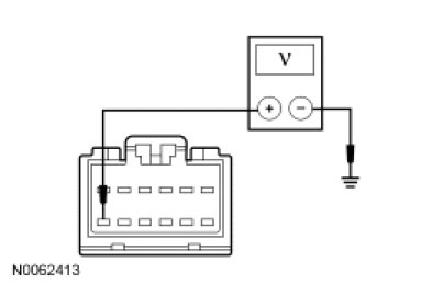 - Measure the voltage between the FDIM C2123-12, circuit SBP14 (BN/RD), harness side and ground.