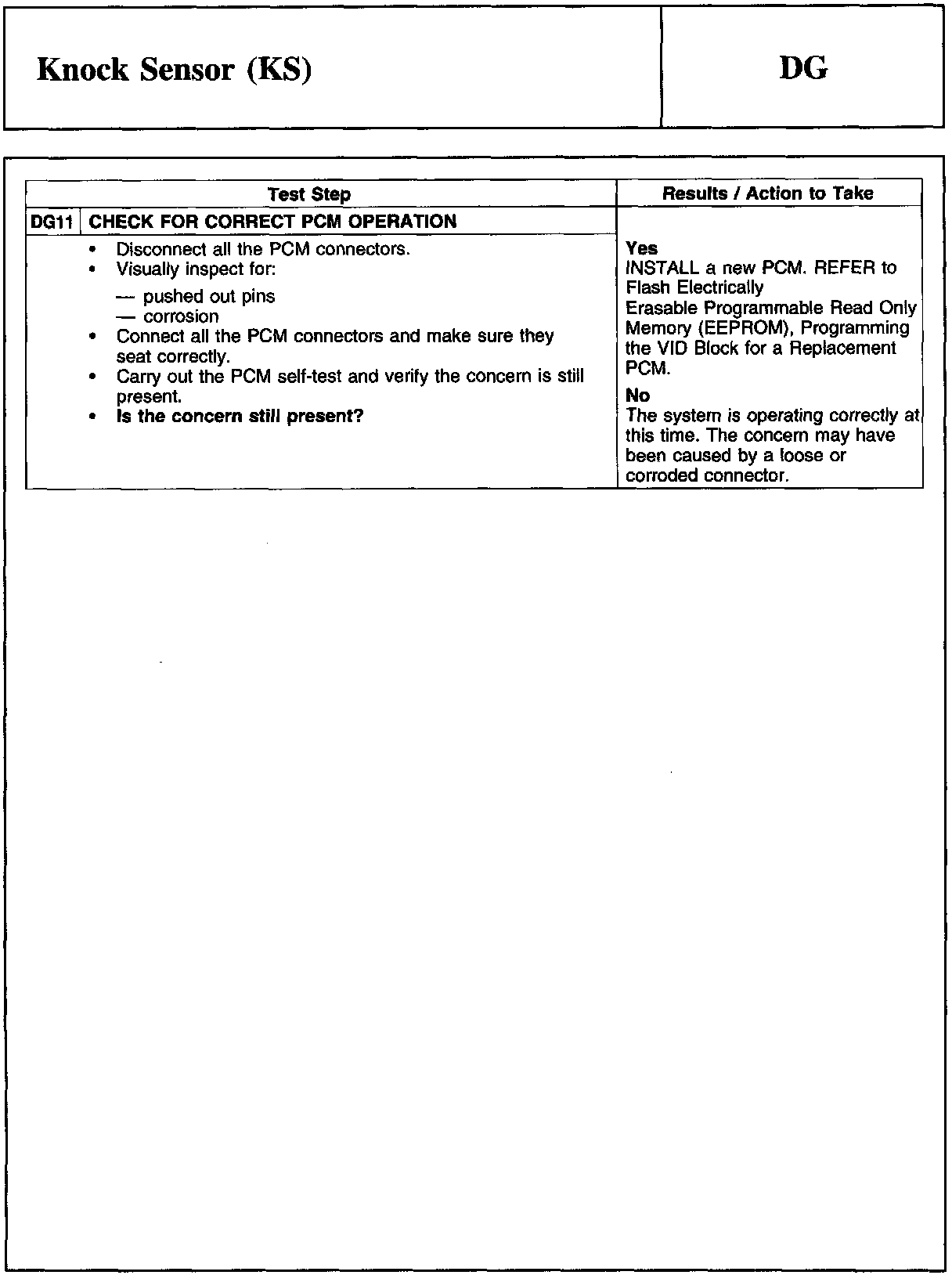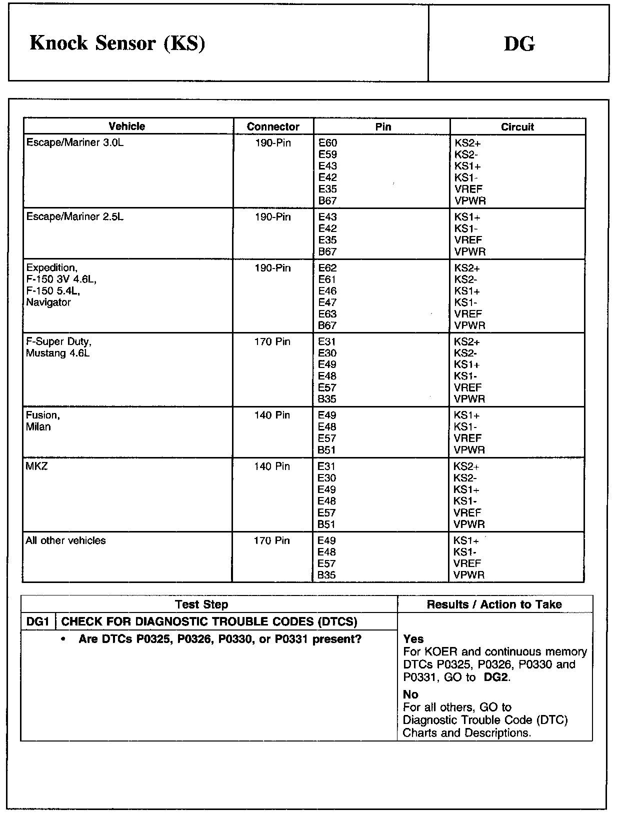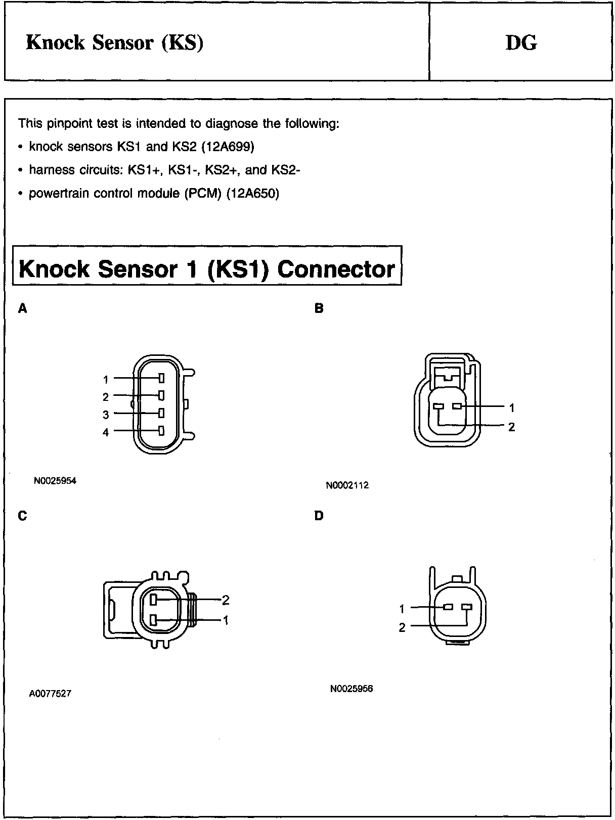 PINPOINT TEST DG: KNOCK SENSOR (KS)