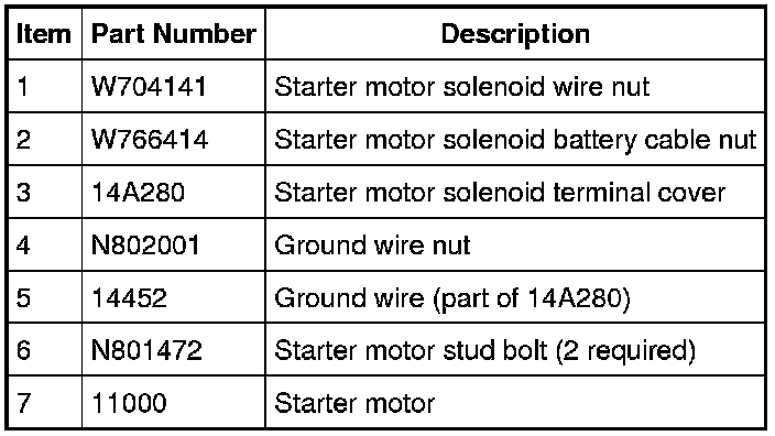 5. Remove the starter solenoid battery cable nut and disconnect the starter motor solenoid terminal cover and cables.