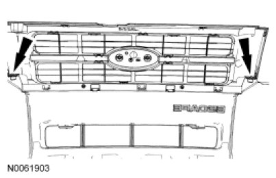 4. Release the 3 radiator grille retaining clips and remove the radiator grille from the fascia.