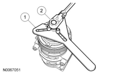 1. Remove the A/C compressor. For additional information, refer to Air Conditioning (A/C) Compressor - 2.5L Service and Repair or Air Conditioning (A/C) Compressor - 3.0L (4V) Service and Repair.