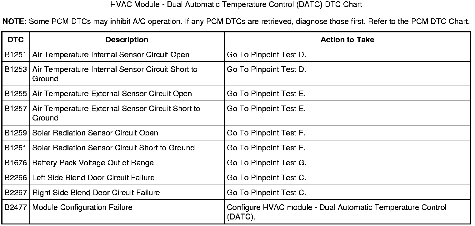 HVAC Module - Dual Automatic Temperature Control (DATC) DTC Chart