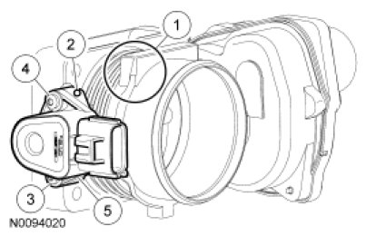 1. Using a suitable heat gun, apply heat to the top of the Electronic Throttle Body (ETB) until the top TP sensor bolt ear reaches approximately 55°C (130°F), this should take no more than 3 minutes using a 1100-watt heat gun. The heat gun should be about an 25.4 mm (1 in) away from the ETB.