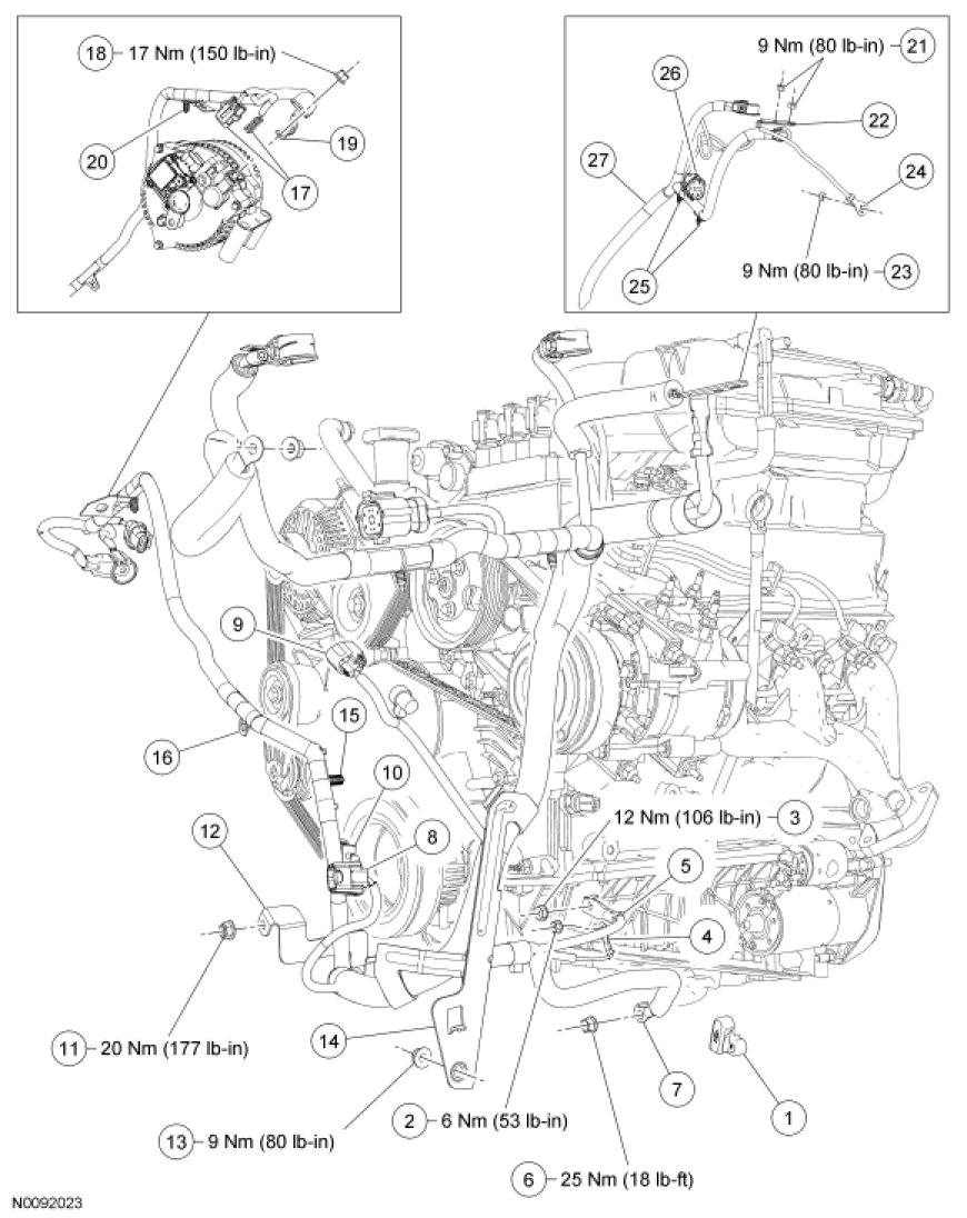 16. Position the protective cover aside, remove the nut and position the generator B+ terminal aside.