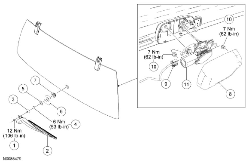 Wiper and Washer System - Exploded View, Rear