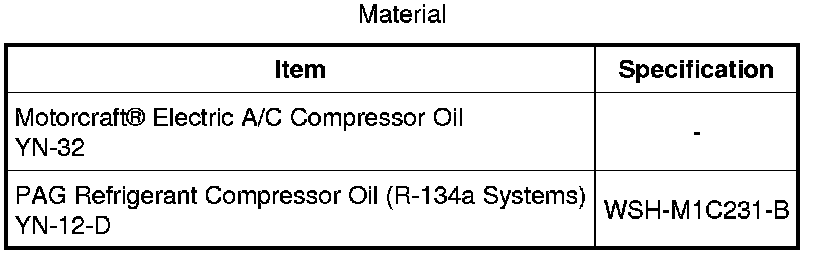 NOTICE: Motorcraft(R) Electric Compressor Oil only must be used as a refrigerant system lubricant for hybrid vehicles. Addition of any oil other than Motorcraft(R) Electric Compressor Oil to the hybrid vehicle refrigerant system will damage the electric Air Conditioning (A/C) compressor and contaminate the refrigerant system.