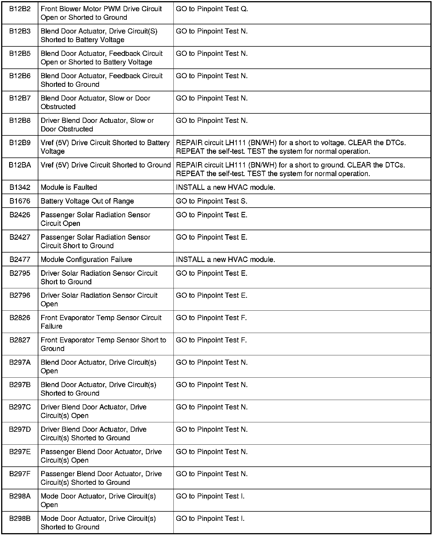 HVAC Module DTC Chart