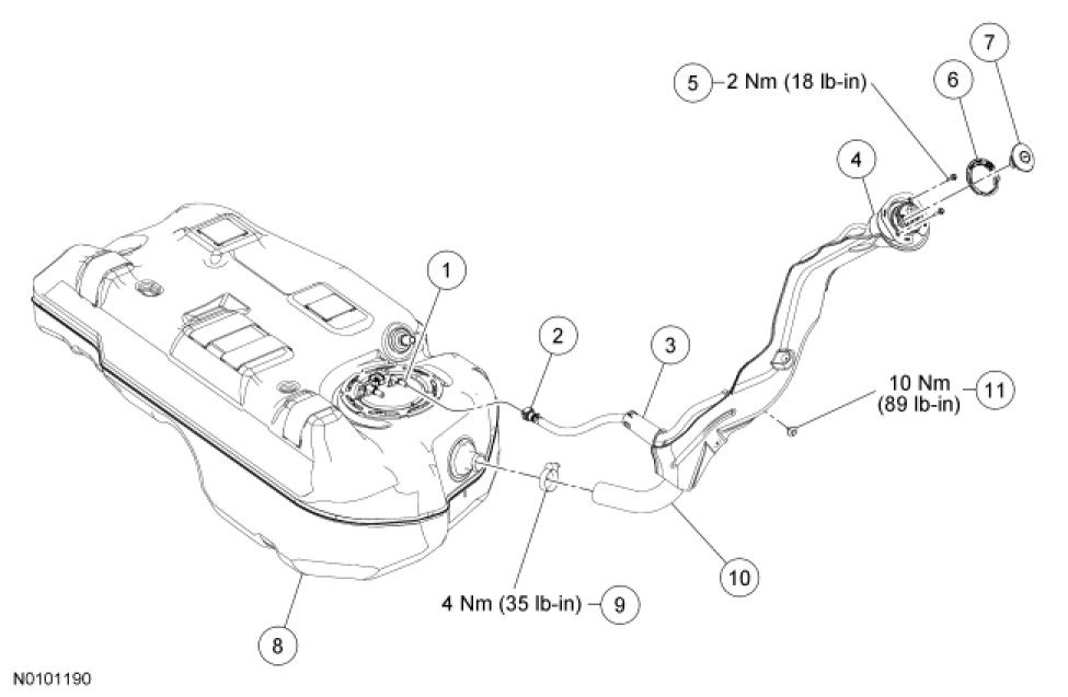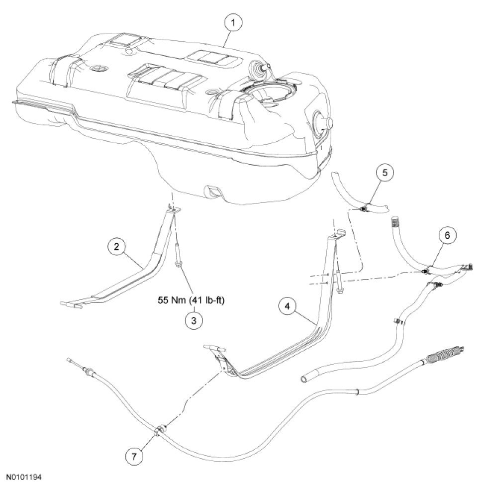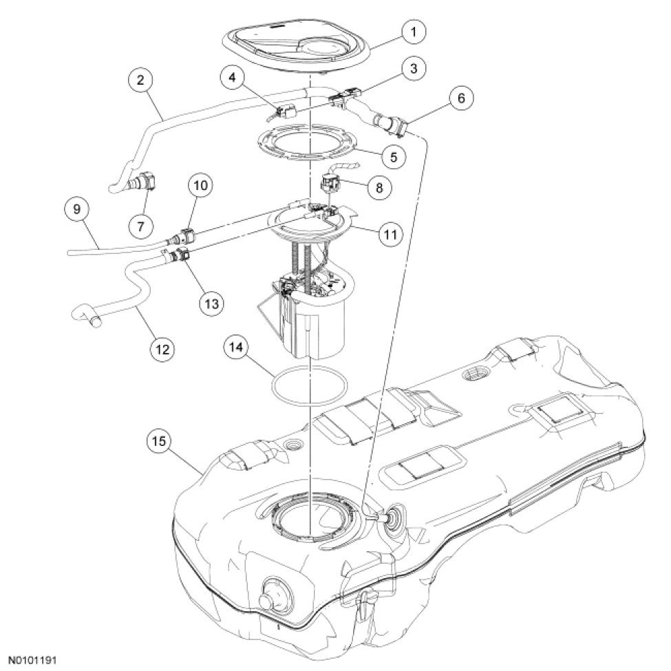 Fuel Tank and Filler Pipe - Exploded View