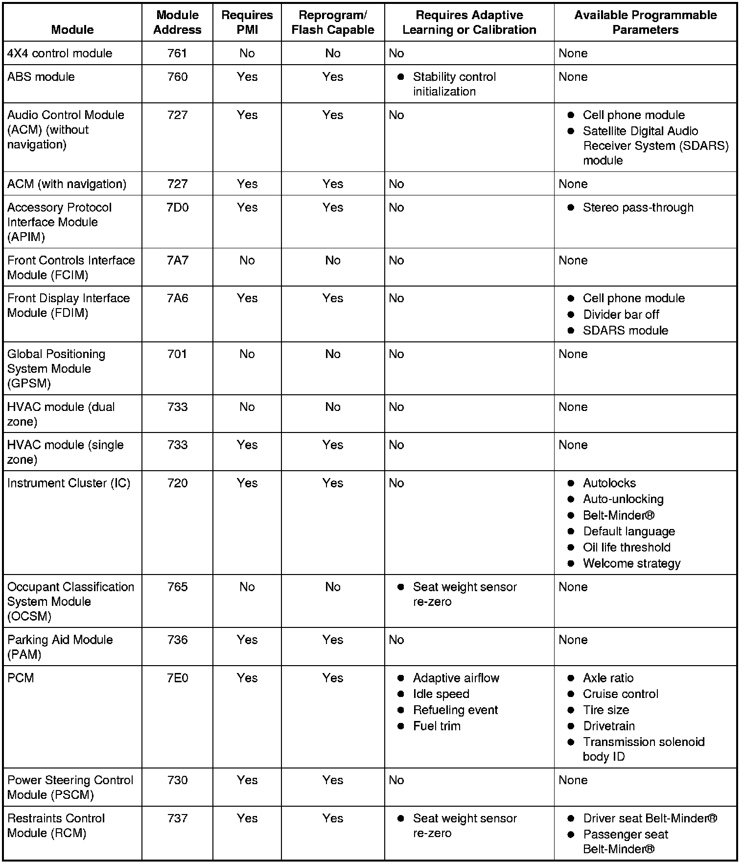 PMI is a scan tool process which configures settings in a new module. Data used for the PMI process is automatically downloaded from the original module and stored when a scan tool session is started. If this data cannot be retrieved from the module being replaced, the scan tool may prompt for As-Built data entry or display a list of parameter values that need to be manually selected. Some modules are reprogrammed during PMI when a strategy/calibration update is available. To carry out PMI, refer to Programmable Module Installation (PMI) Programmable Module Installation (PMI).