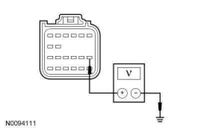 - Measure the voltage between the RCM C2041a-13, circuit CBP31 (BU/OG), harness side and ground.
