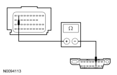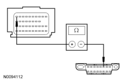 - Measure the resistance between the RCM C2041b-10, circuit VDB04 (WH/BU), harness side and the DLC C251-6, circuit VDB04 (WH/BU), harness side.