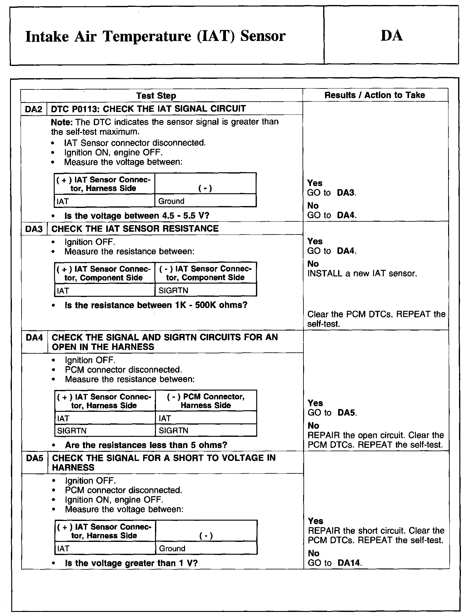 PINPOINT TEST DA: INTAKE AIR TEMPERATURE (IAT) SENSORTemperature Sensor Voltage And Resistance Specifications: