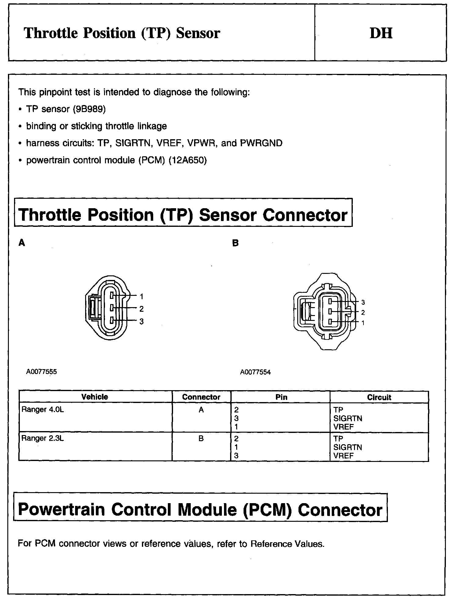 Test DH: Throttle Position (TP) Sensor