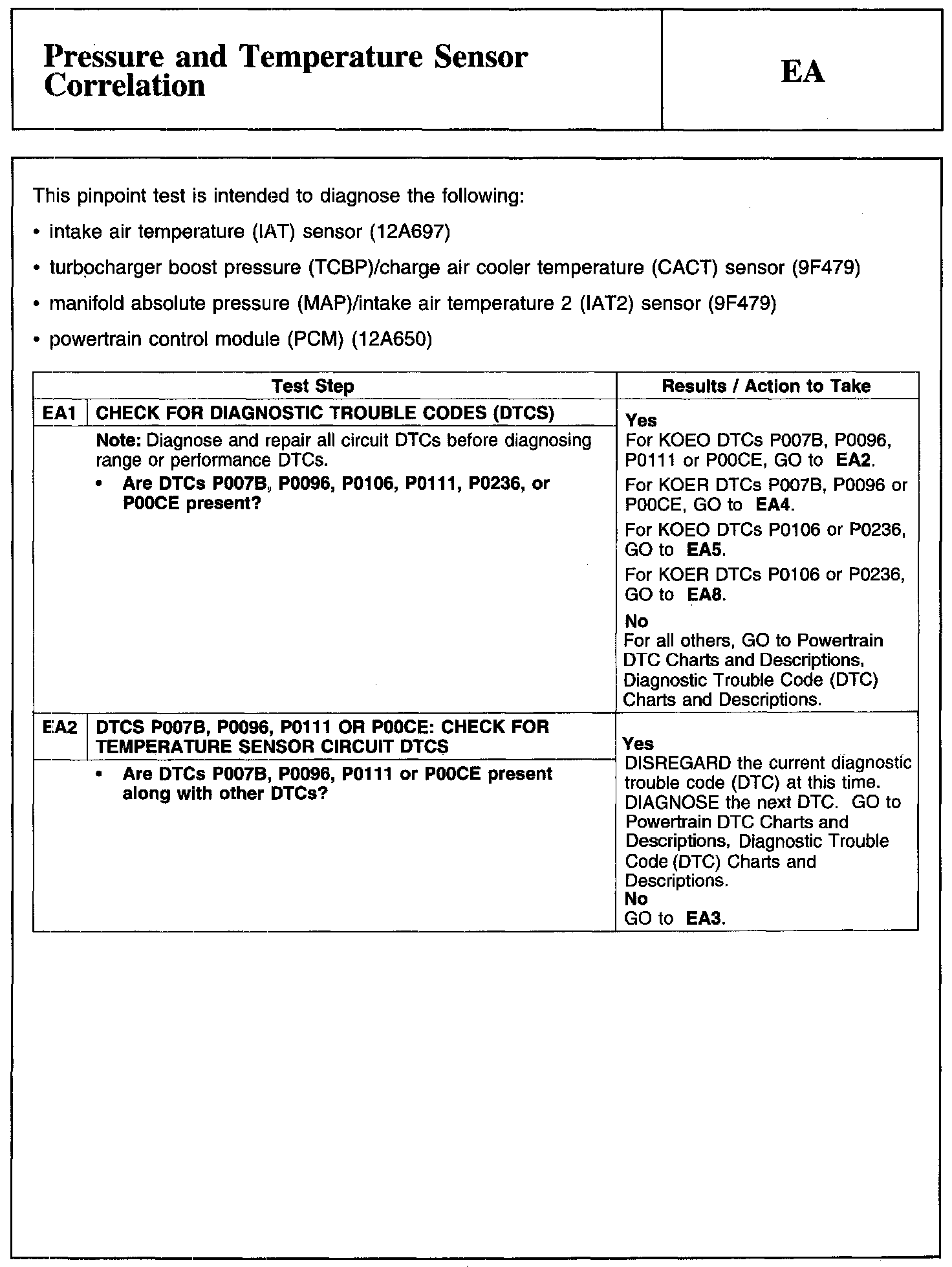 Test EA: Pressure And Temperature Sensor Correlation