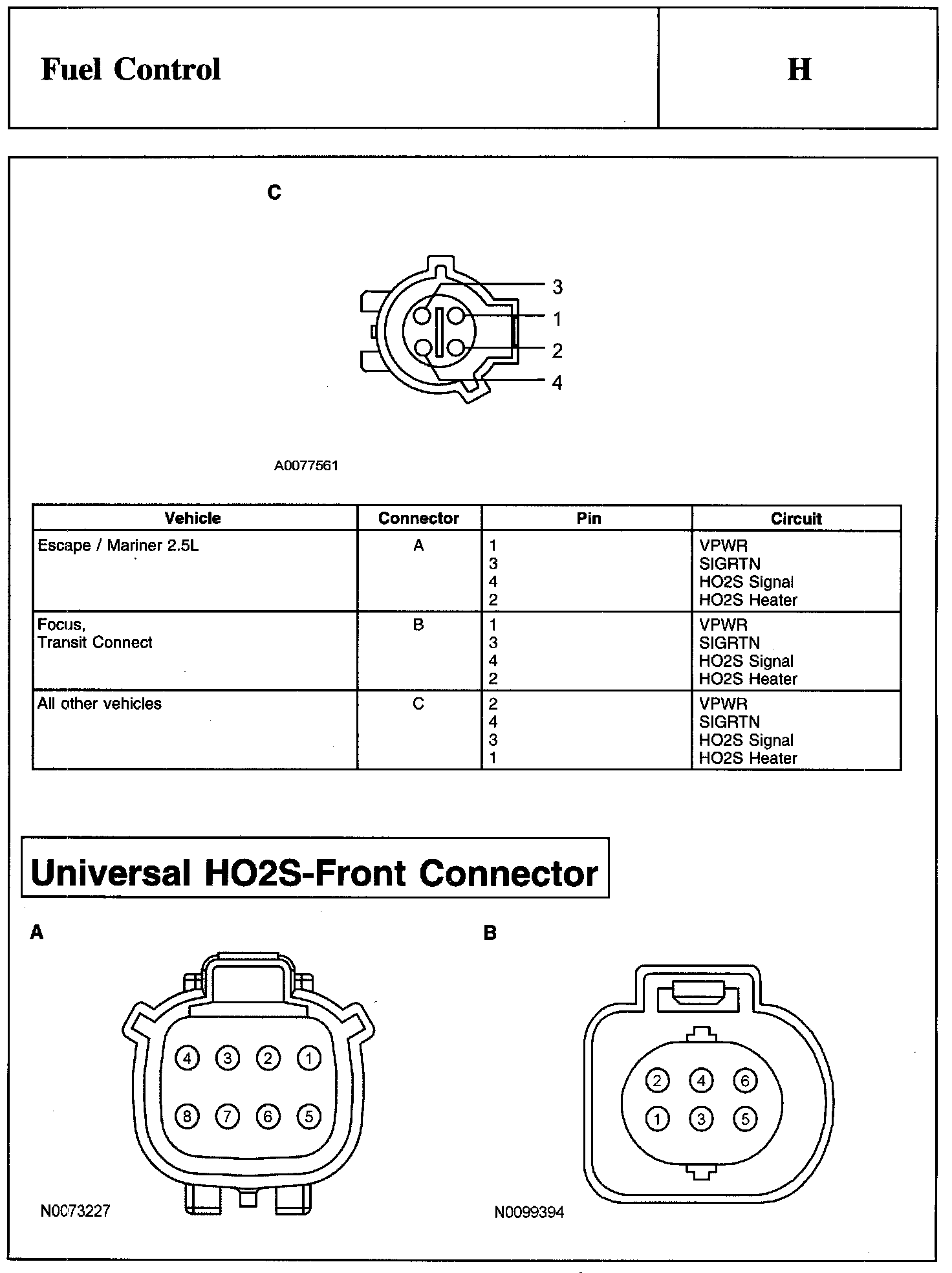 Heated Oxygen Sensor-Front (HO2S-Front) Connector: