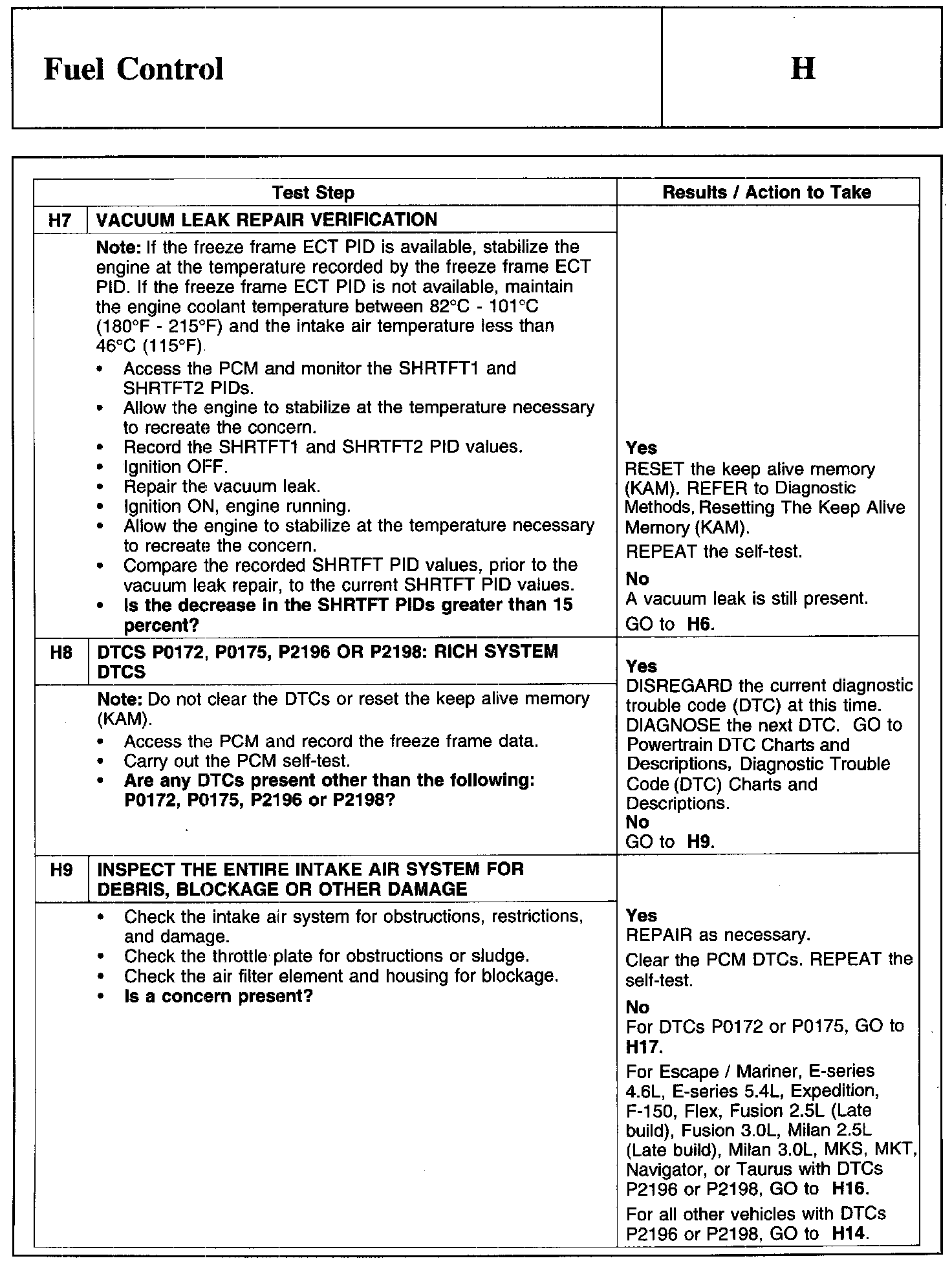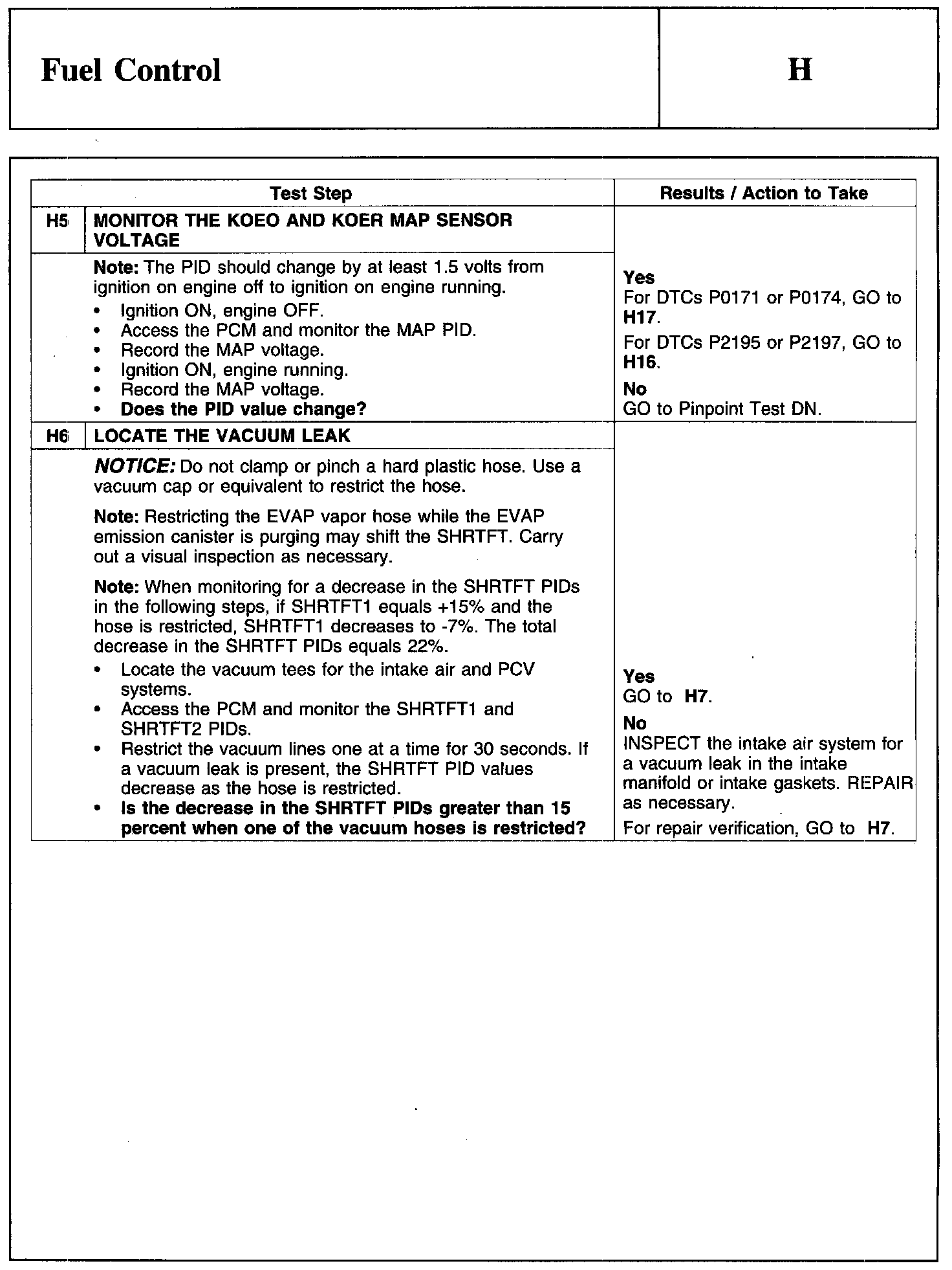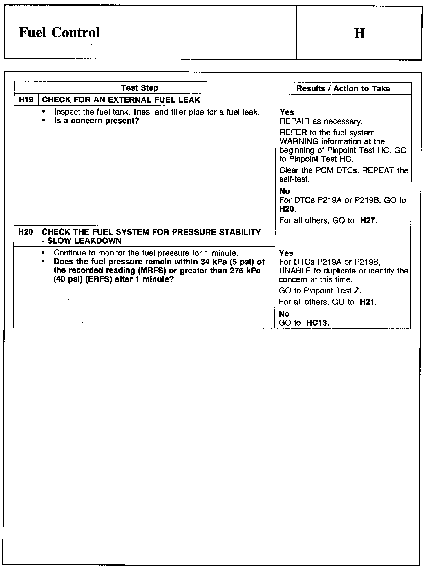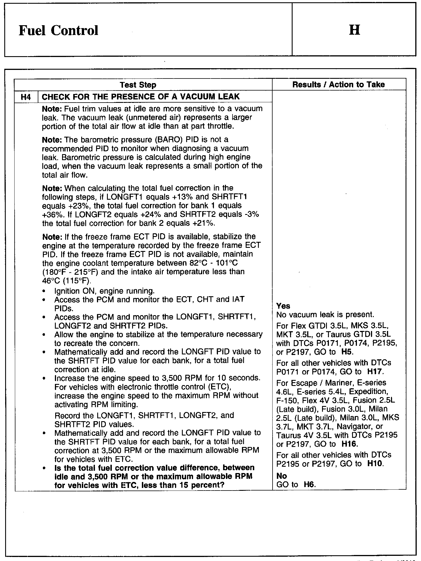PINPOINT TEST H: FUEL CONTROL