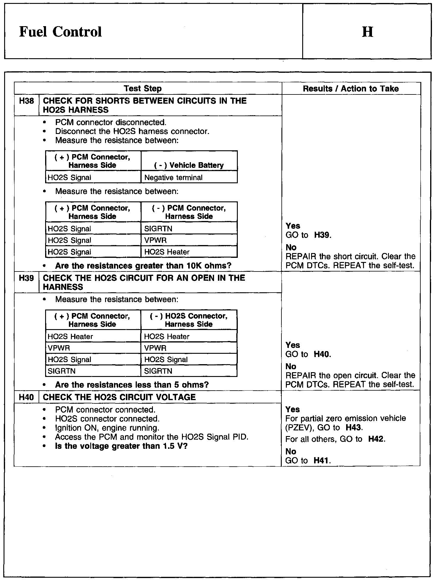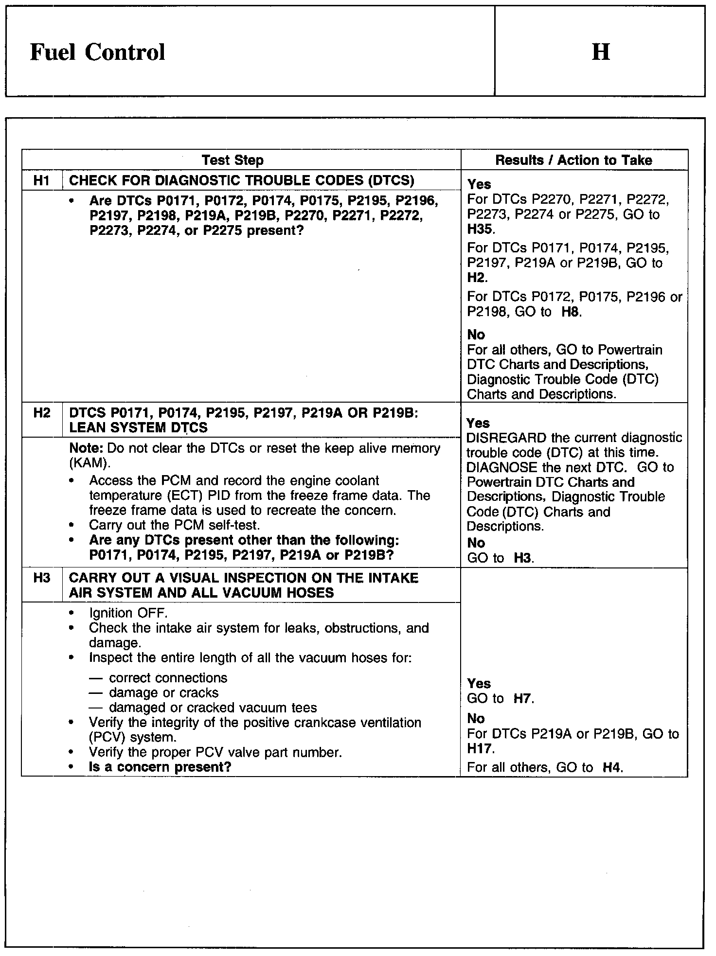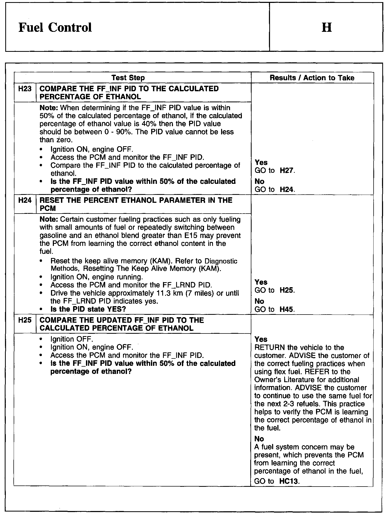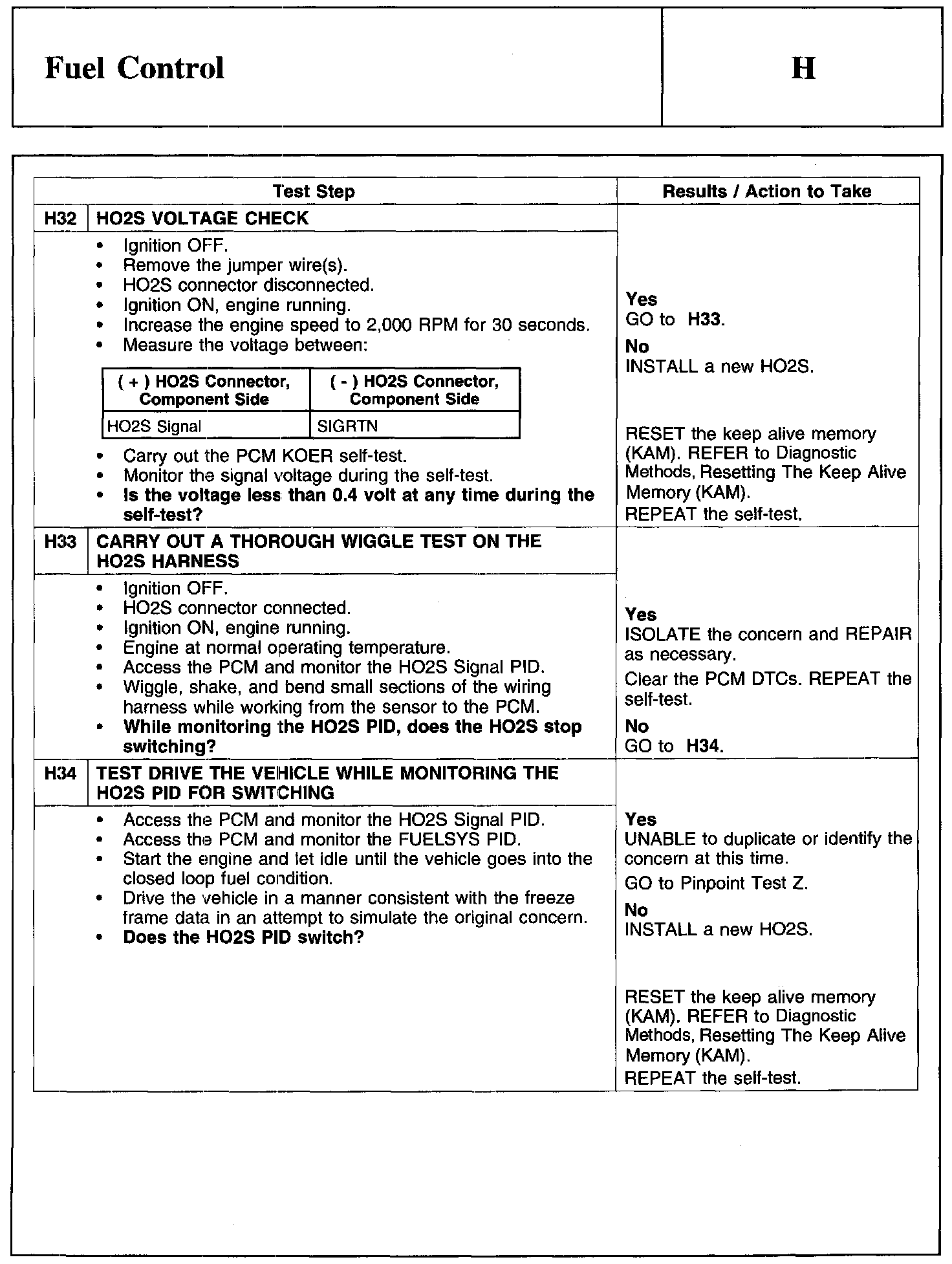 PINPOINT TEST H: FUEL CONTROL