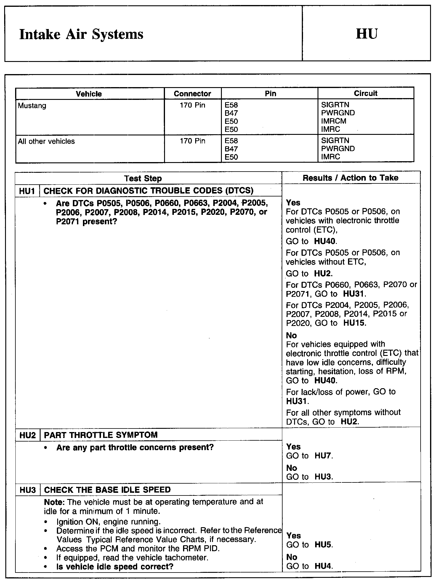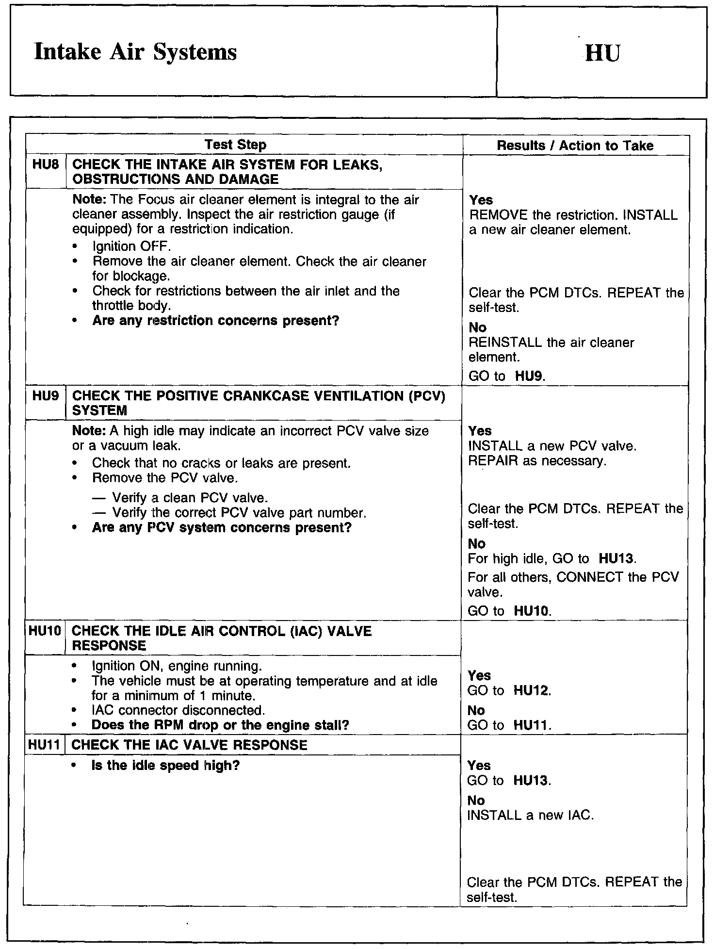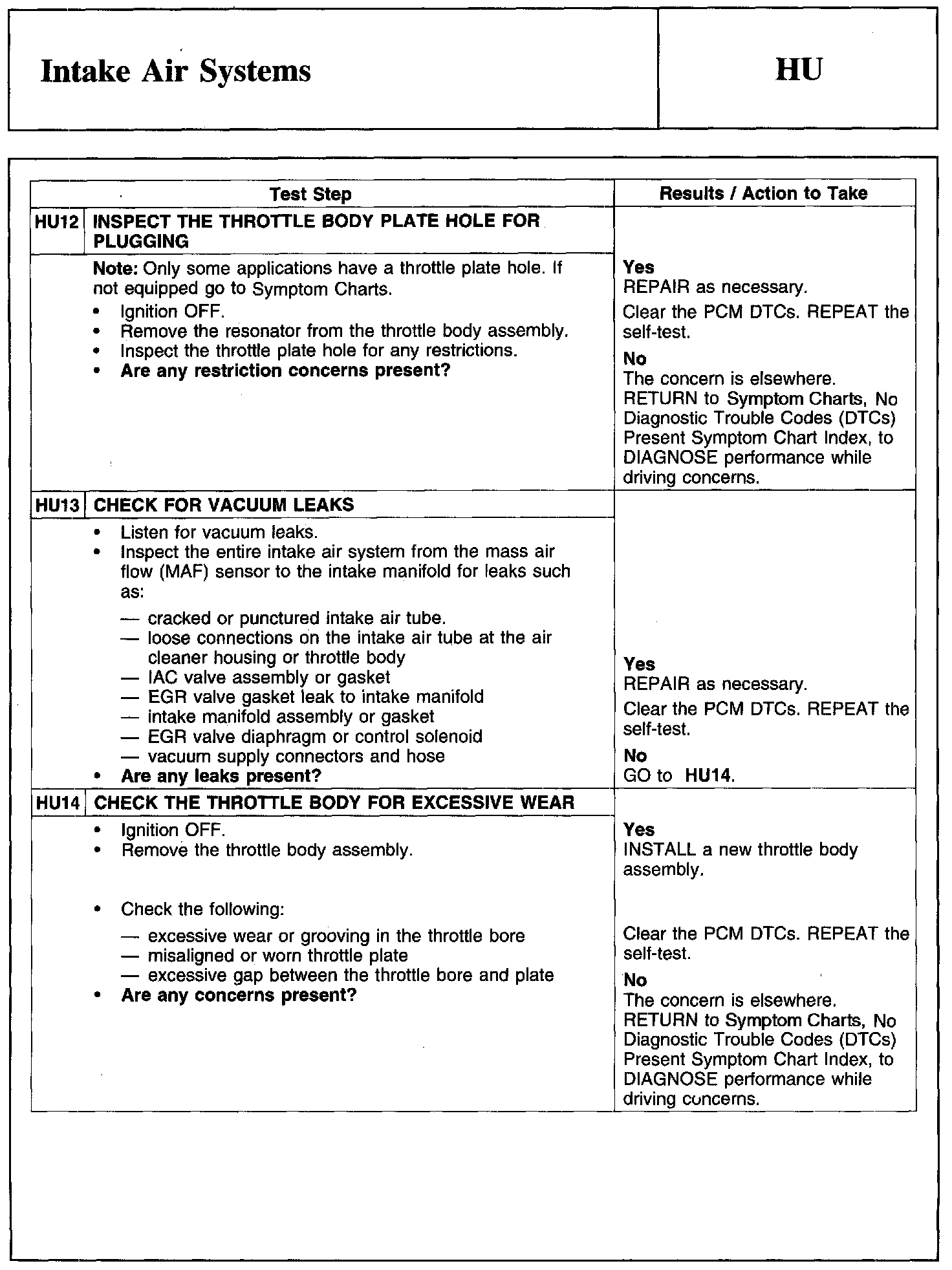 Test HU: Intake Air Systems