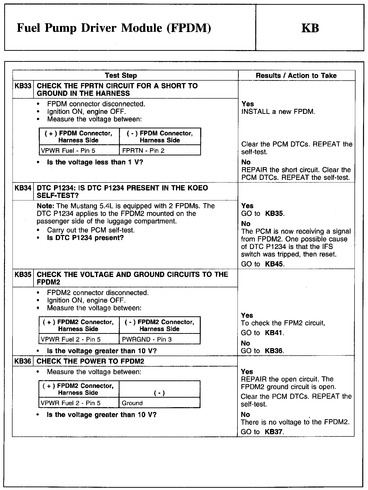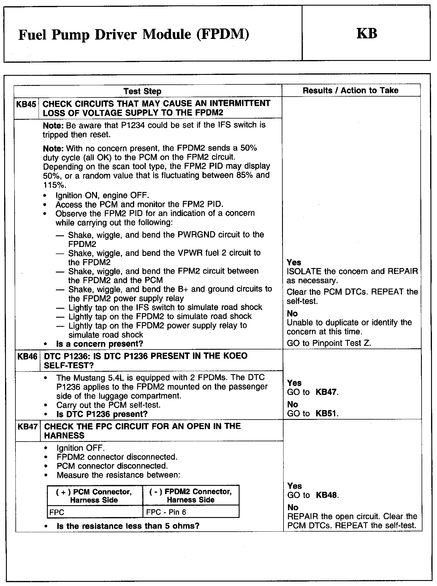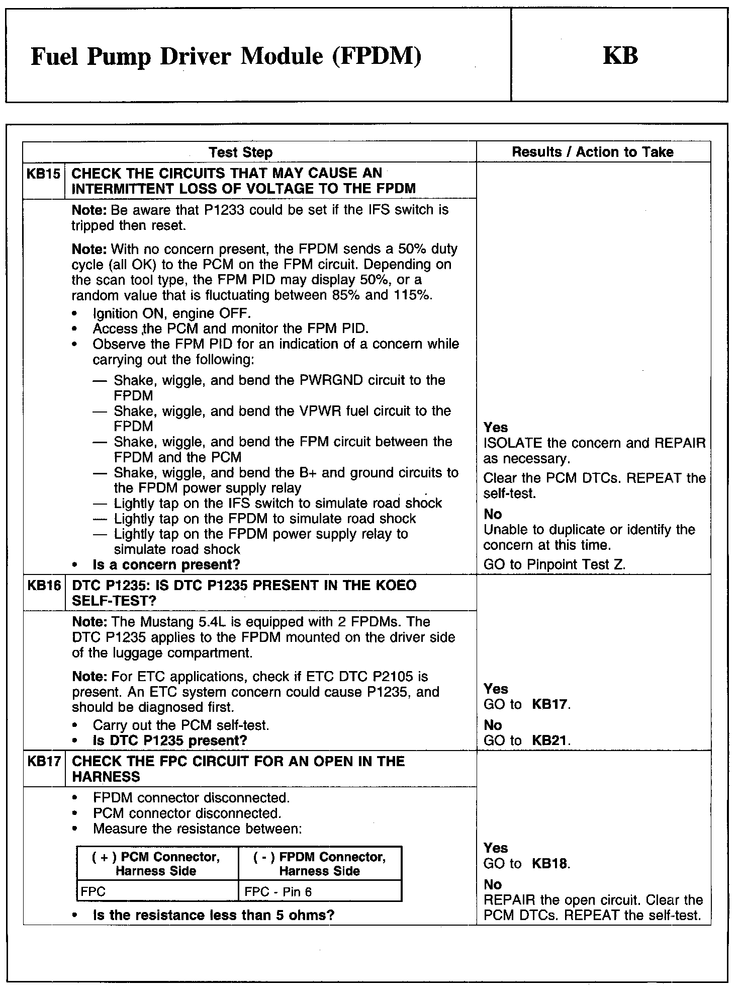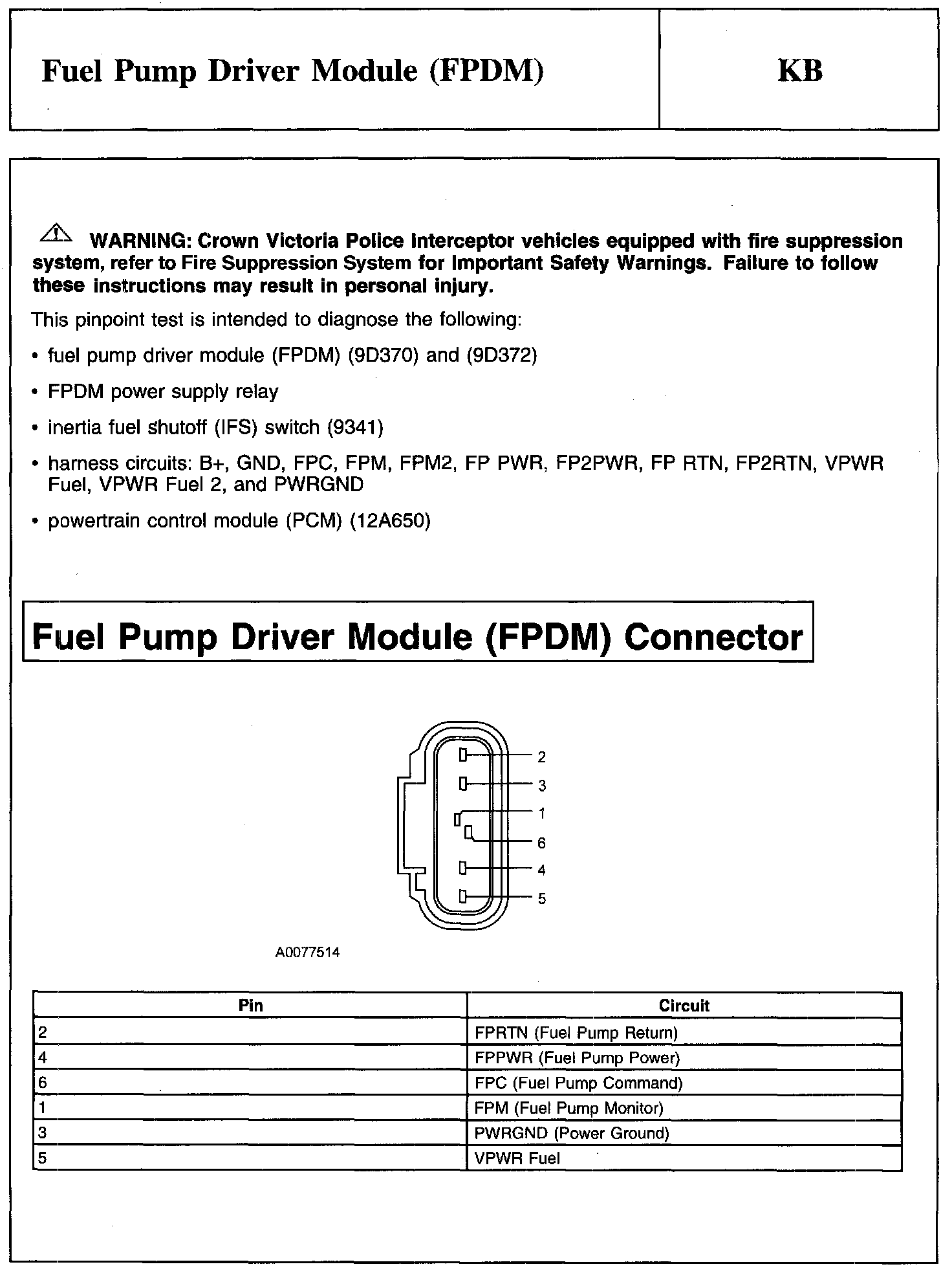 PINPOINT TEST KB: FUEL PUMP DRIVER MODULE (FPDM)Warning And Fuel Pump Driver Module (FPDM) Connector: