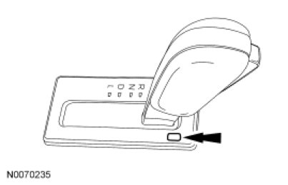3. Using a suitable tool, depress the Brake Shift Interlock Actuator (BSIA) override mechanism on the selector lever, apply the brake, depress the button on the selector lever and move the selector lever into NEUTRAL.