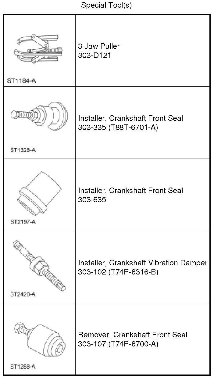 7. Using the 2 Crankshaft Front Seal Installers and the Crankshaft Vibration Damper Installer, install the crankshaft front seal.