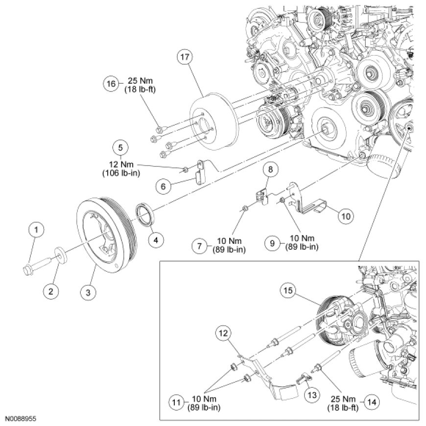 - Tighten to 25 Nm (18 lb-ft).