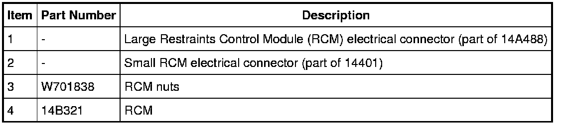 NOTE: When installing a new Restraints Control Module (RCM), always make sure the correct RCM is being installed. If an incorrect RCM is installed, erroneous DTCs will result.
