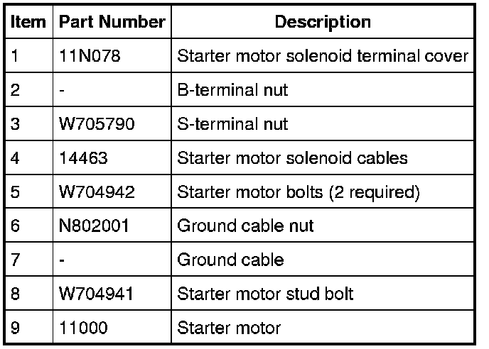 WARNING: Always disconnect the battery ground cable at the battery before disconnecting the starter motor battery terminal lead. If a tool is shorted at the starter motor battery terminal, the tool can quickly heat enough to cause a skin burn. Failure to follow this instruction may result in serious personal injury.