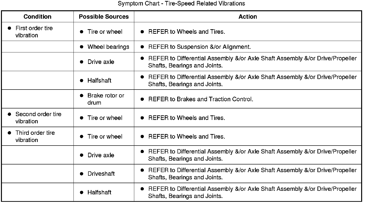 Symptom Chart - Tire-Speed Related Vibrations