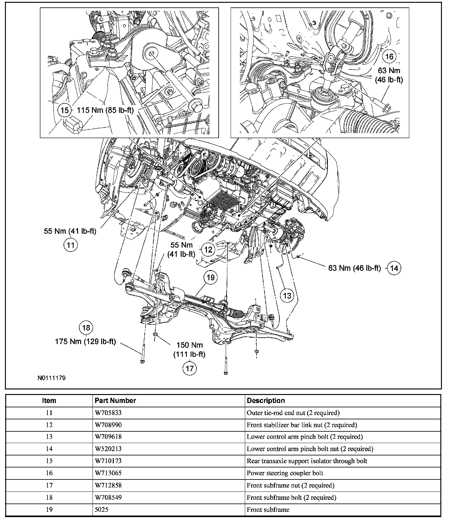 Suspension and subframe fasteners are critical parts because they affect performance of vital parts and systems and their failure can result in major service expense. A new part with the same part number must be installed if installation becomes necessary. Do not use a replacement part of lesser quality or substitute design. Torque values must be used as specified during reassembly to make sure of correct retention of these parts.