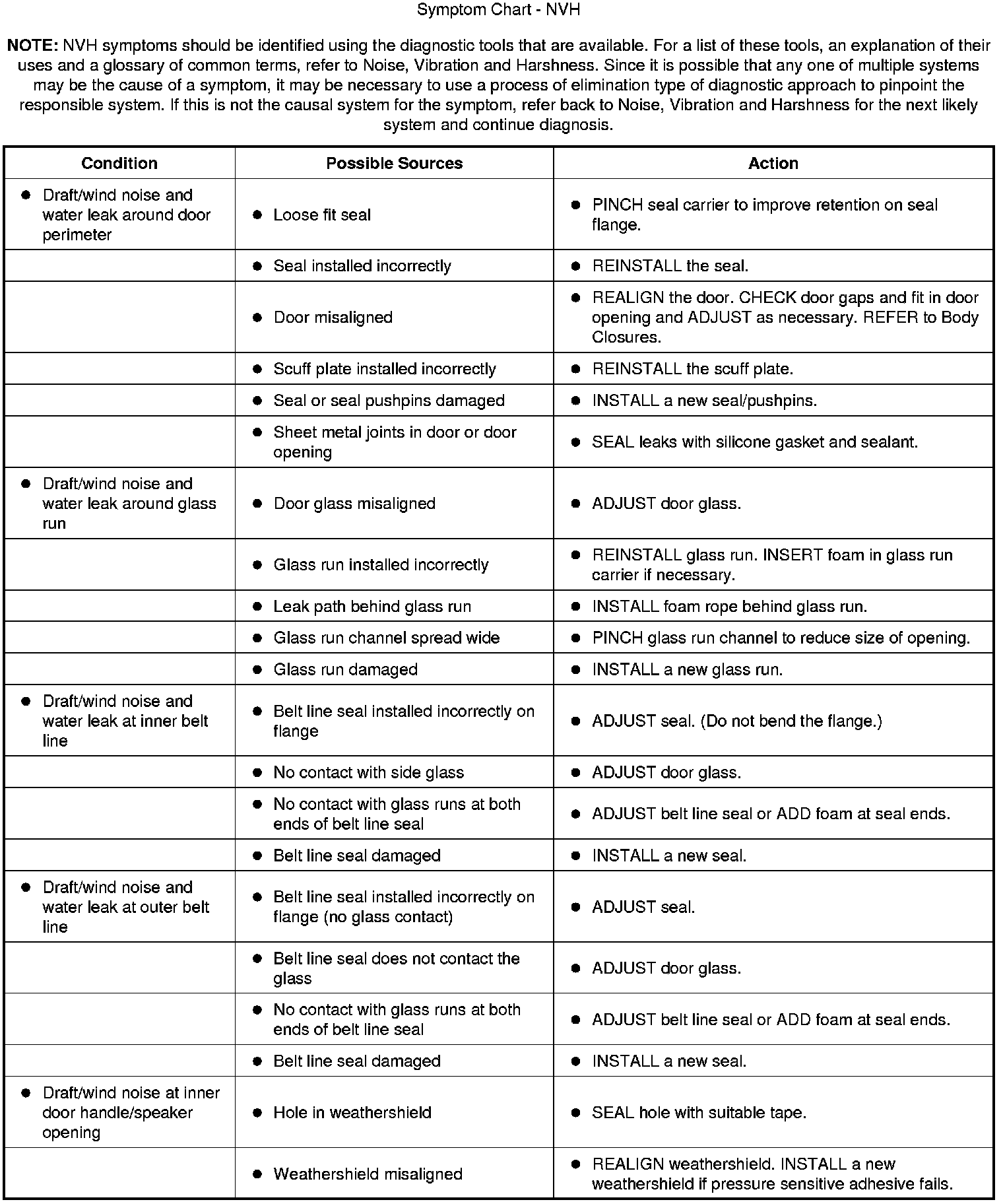 Symptom Chart - NVH