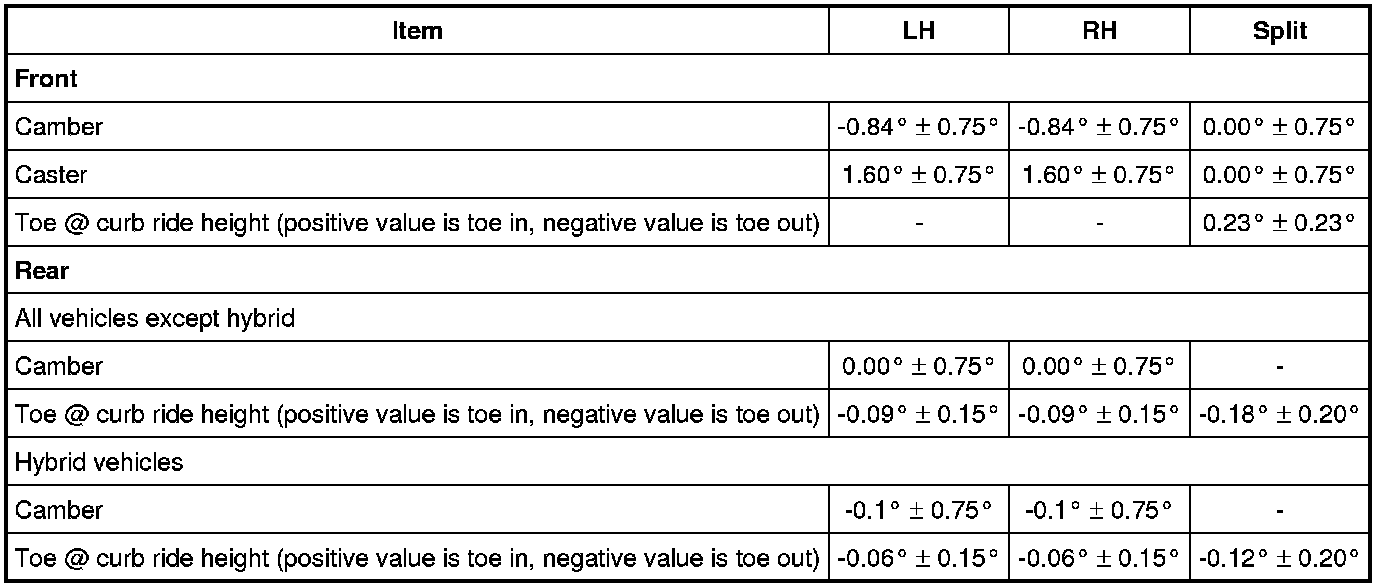 All alignment specifications are with the vehicle fuel tank full.