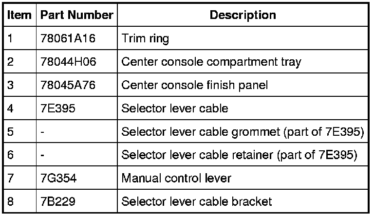 - Adjust the selector lever cable after installation. For additional information, refer to Selector Lever Cable Adjustment Adjustments.