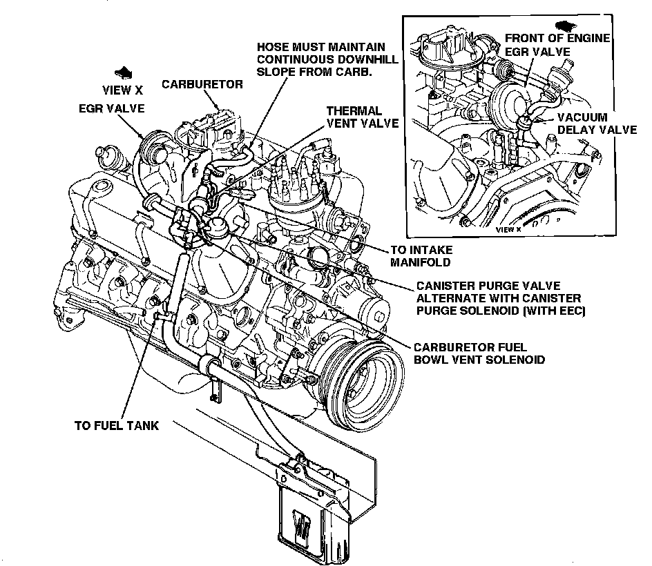 Fig. 3 Evaporative emission controls system. 1982 models W/V6 & V8 engines: