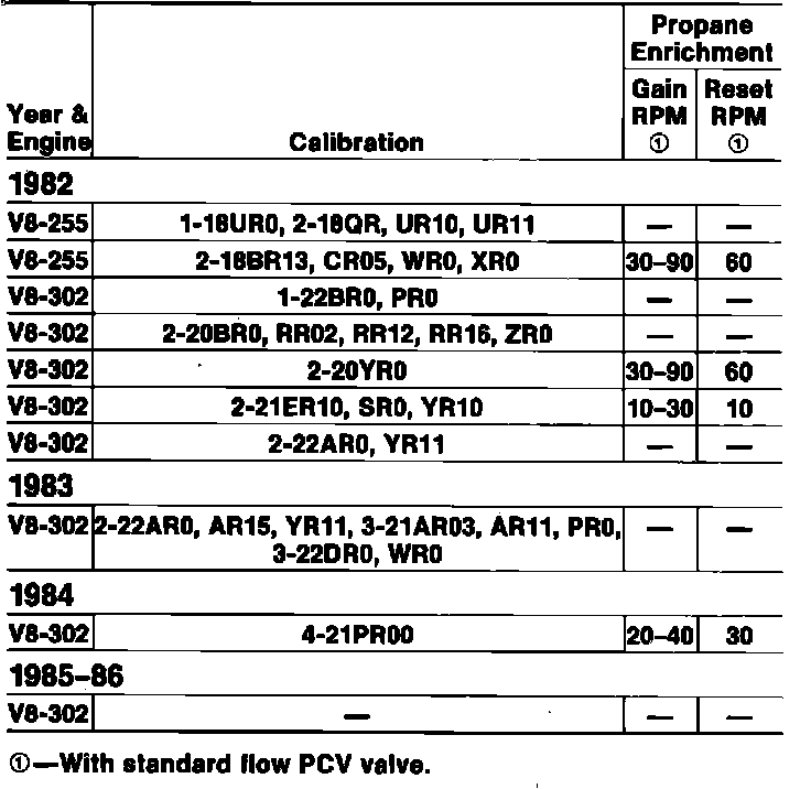 Fig. 4 Propane enrichment chart. 1982 - 86 models: