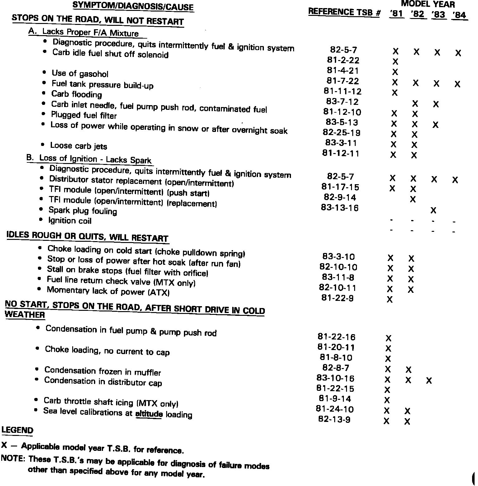 Engine - Power Loss/Quitting TSB Summary