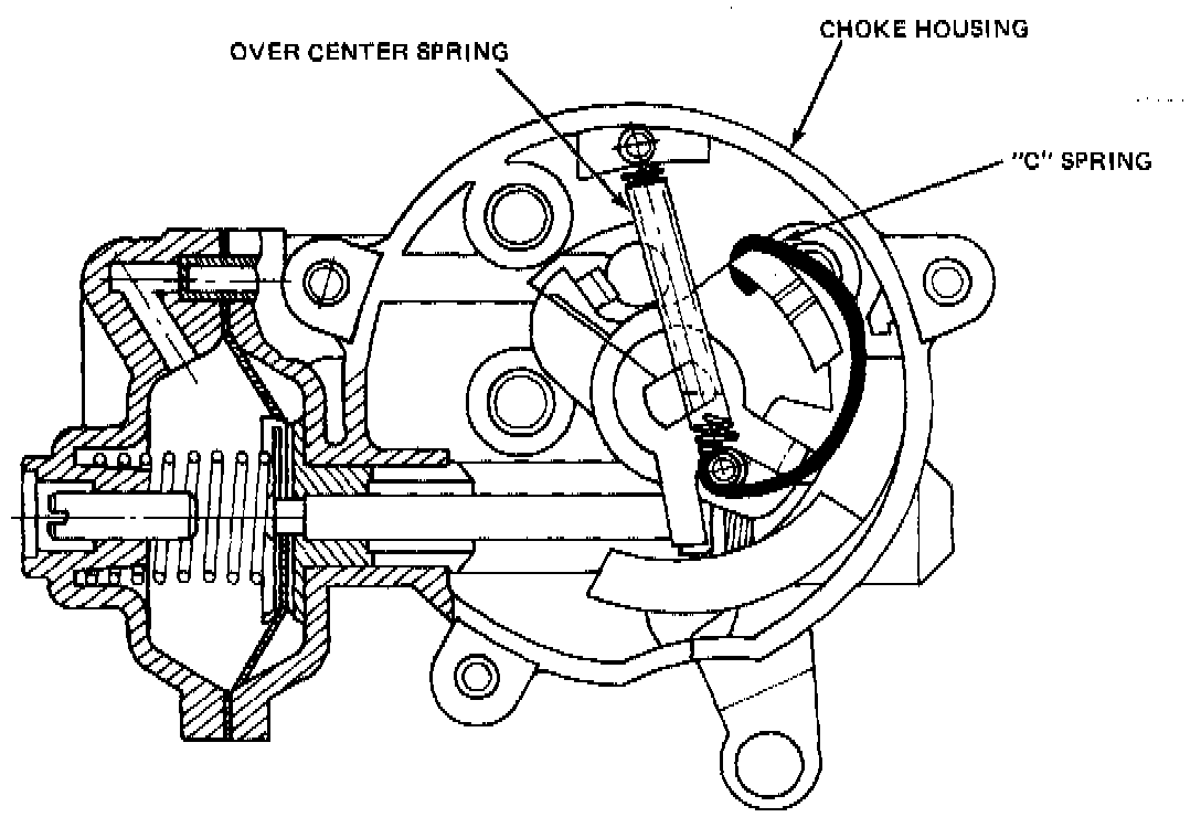 On "C" spring equipped carburetors, the choke breather angle must be checked and adjusted. The choke breather angle is not normally checked and/or adjusted. The breather angle is not to be confused with choke pulldown, de-choke, or cam set; but is a separate choke function that applies to "C" spring equipped carburetors only.