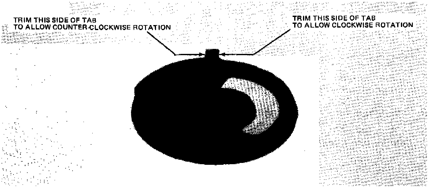 e. Rotating the index plate clockwise will increase breather angle distance. This may necessitate removing small amounts from the index plate choke housing locking tab (Figure 11). This will allow the index plate to rotate in either the clockwise or counter-clockwise direction to gain the necessary travel to allow the specified breather angle clearance.
