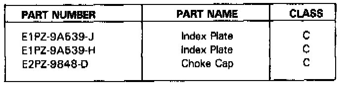 4. Determine if the carburetor is equipped with a "C,, spring (Figure 8). If the carburetor has a "C" spring, install the new choke index plate (E1PZ-9A539-J): proceed to Note. If the carburetor does not have a "C" spring, install a new choke index plate (E1PZ9A539-H) (Figure 11).