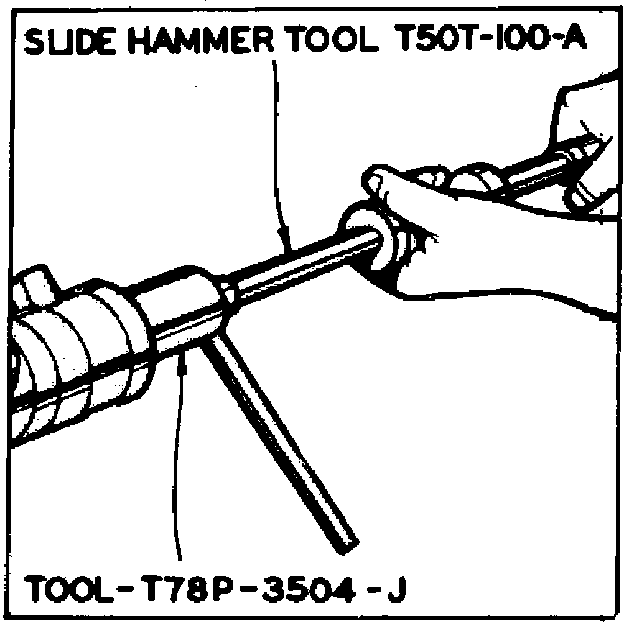 8. Position rack bushing, seal end first into tool No. T78P-3504-L, or equivalent, then place tool and bushing in a vise. With tool No. T78P-3504-J, or equivalent, and a suitable slide hammer, remove seal, Fig. 8.
