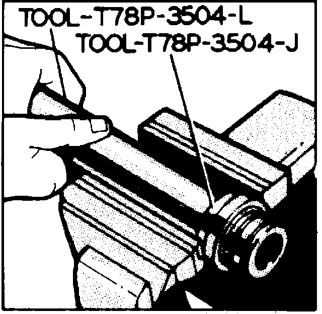 8. Position small diameter end of tool No. T78P-3504-M, or equivalent, into righthand side opening of gear housing.