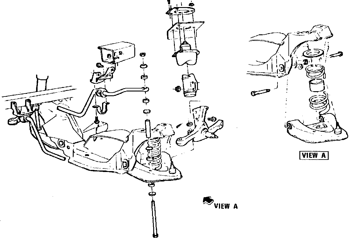 This suspension, Fig. 1, is a modified MacPherson strut design, which uses shock struts and coil springs. The springs are mounted between the lower control arm and a spring pocket in the crossmember.